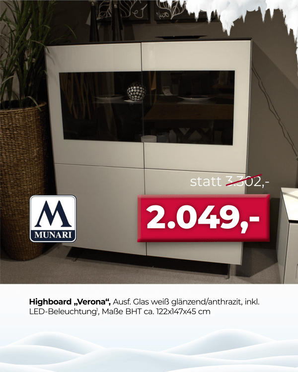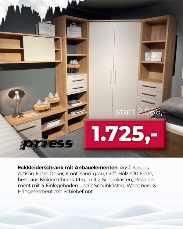 Auch wenn Sie in unserer Ausstellung nicht fündig geworden sind, profitieren Sie trotzdem von attraktiven Preisvorteilen: Sichern Sie sich bis zu 20 % Rabatt auf ALLE Neu-Bestellungen* – ganz unabhängig von Stil, Größe oder Ausstattung. Gönnen Sie sich jetzt exklusive Preisvorteile auf Ihre neuen Möbel- und Einrichtungswünsche. Wählen Sie aus einer großen Auswahl hochwertiger Produkte in allen Abteilungen und gestalten Sie Ihr Zuhause individuell, modern und ganz nach Ihren Vorstellungen.