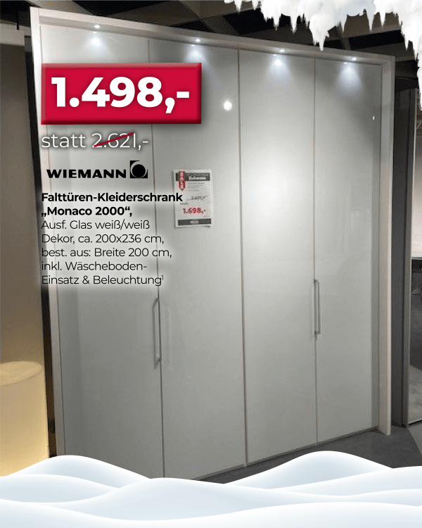 es ist wieder soweit: Die gesetzlich vorgeschriebene Inventur kommt auf uns zu. Wir nutzen daher die nächsten Tage, um unseren Warenbestand im Vorfeld der Zählung zu reduzieren. Helfen Sie uns dabei – denn wir trennen uns von durchweg neuwertigen Ausstellungsmöbeln und -Küchen.